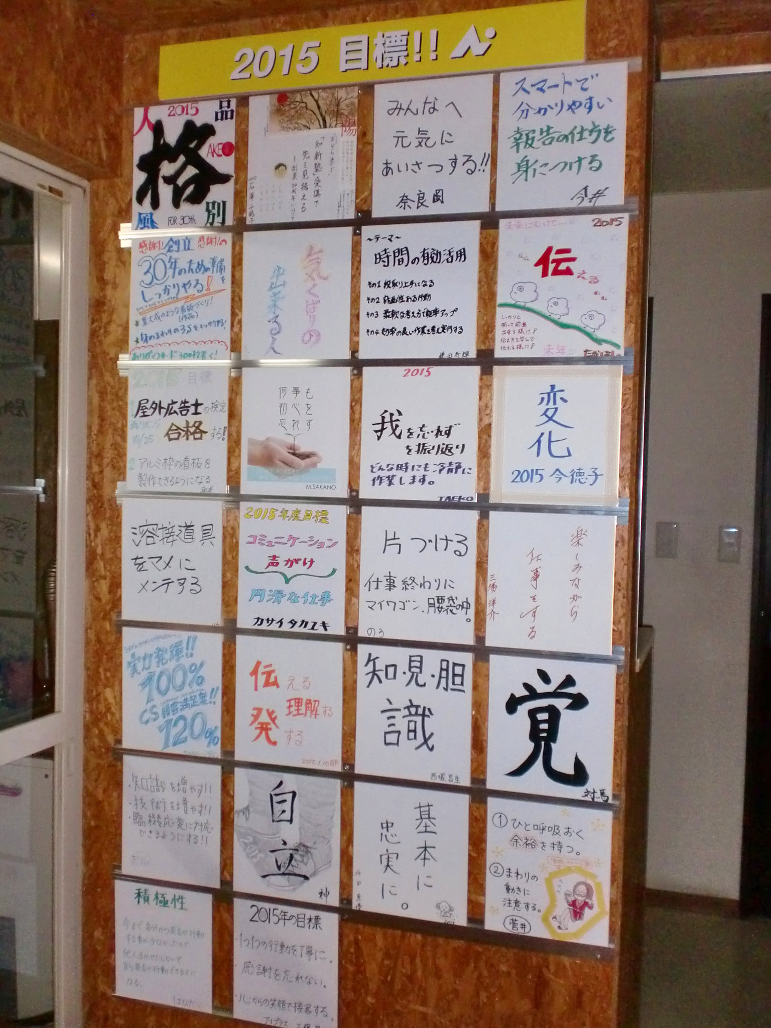 今年は昨年サイン工事でお世話になった、ホテルナクアシティ様の一室を会場に、社員全員が目標に向かって一丸となるための話し合いをしました。